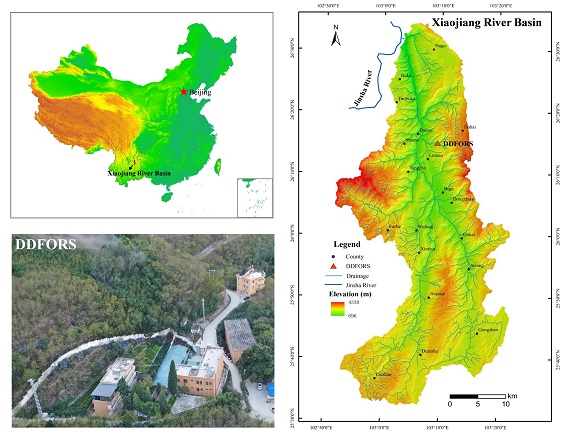 The Dongchuan Debris Flow Observation and Research Station (DDFORS), Chinese Academy of Sciences, locates in Dongchuan District, Kunming, Yunnan Province of China (N26°14’, E103°08’), is a facility of the Institute of Mountain Hazards and Environment, Chinese Academy of Science (CAS). DDFORS won the first-class award and became an Open Field Observation Station of CAS in 1988, and was further authorized to be the State Key Field Observation Station in 2000. This is the sole automatic field observation station of debris flow in China. Since 1960, continual observations of field debris flows that occurred in the Jiangjia Ravine have been conducted for more than sixty years. Debris flow initiation, transportation, and deposition have been monitored. Meanwhile, forecasting, warning, and mitigation of debris flows have also been carried out.