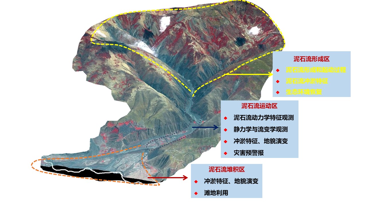 (1)山地灾害形成机理与演化过程:山区小流域水-土-生相互作用机理与泥石流形成和汇流过程;小流域洪水产汇流机理和模型;浅层滑坡形成动力过程;山地灾害运动、输沙、堵江机理与山区河流演变规律;山地灾害链生过程与临界条件。