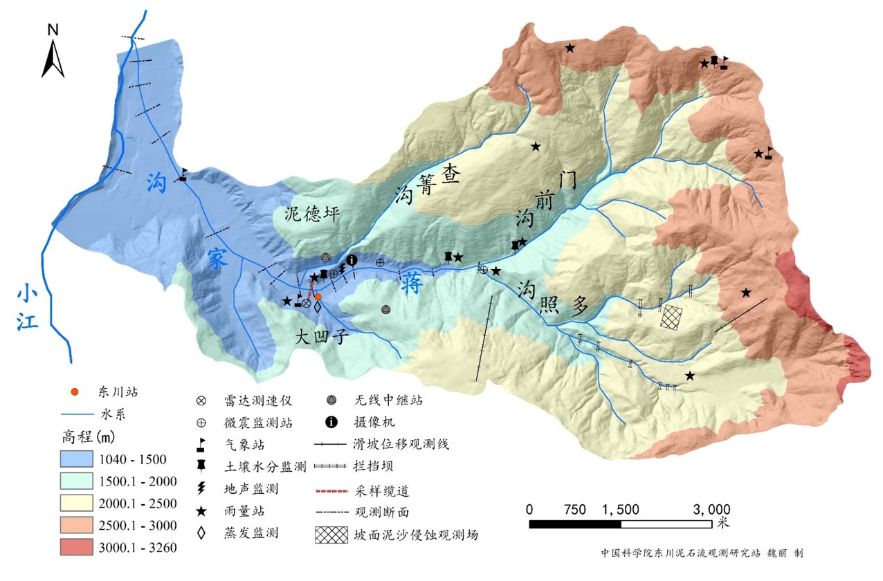 东川站是目前国际上观测历史最长、观测项目最全、观测实验设备和基础设施最完善的泥石流观测研究站。东川站成立以来,最长观测数据系列达50余年,奠定了我国的泥石流学科基础,在泥石流减灾理论和技术方面创立了针对不同对象的泥石流综合减灾模式,为我国泥石流减灾做出了难以替代的突出贡献。
