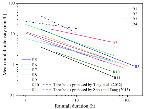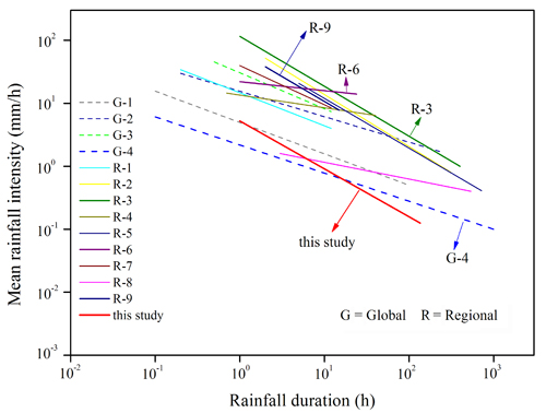 汶川地震灾区与世界其他地区泥石流的降雨阈值比较