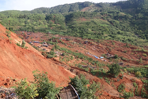 玻璃村滑坡与受灾现场