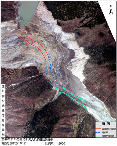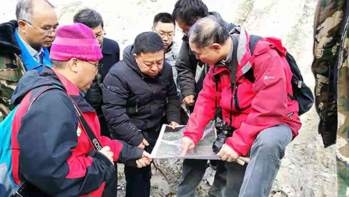 11月9日经过3个多小时陆路和1个多小时水路跋涉,崔鹏院士、游勇总工程师与应急管理部叶建春副部长到达滑坡堰塞坝体现场,对本次滑坡堰塞湖灾害进行了现场考察,分析了滑坡形成条件、发展趋势及对抢险救灾人员的威胁,对堰塞坝地形条件、岩土组成、结构特征等进行了分析,并对泄流槽位置、断面尺寸等抢险方案进行了现场会商,提出了建设性意见得到采纳。