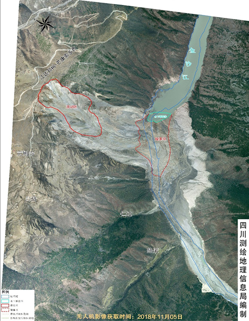 “11.3”滑坡堰塞湖灾害发生后,成都山地所第一时间与四川测绘地理信息局沟通协商,紧急启动了重大自然灾害应急防灾救灾机制,及时派出由欧国强研究员、王全才研究员、苏凤环副研究员等人员组成的专家组,联合开展应急测绘与灾情快速评估工作。专家组充分利用5日17时获取的高分辨率无人机影像数据和二次滑坡堵江事件前的多期高分辨率地形与影像数据,在分析两次滑坡、堰塞湖的基本数据的基础上,完成了二次滑坡堰塞湖灾情快速研判与减灾咨询建议撰写,相关成果第一时间提交四川省政府应急办、减灾委等,作为应急救援与处置的决策依据。