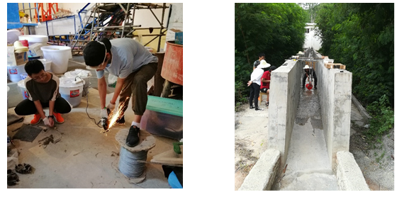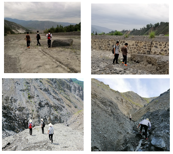 来站期间,宋东日研究员带领其研究生对附近的蒋家沟的地层岩性、结构构造、泥石流堆积物、沟道特征、植被等进行了野外考察,让学生们对当地泥石流形成的物源条件、流通路径、堆积特征等有了宏观的了解。随后,带领学生安装并测试了泥石流物理实验设备,根据研究目标和以往泥石流水槽实验的经验,以泥石流固相浓度为变量设计了多组泥石流冲击实验,借助站上的水槽,顺利完成了物理实验。在此期间,还与台站工作人员和其他科研学者展开了交流学习,协助周公旦研究员的学生完成溃坝实验,参观了其他组的泥石流侵蚀实验。在东川泥石流观测站开展的野外调查和物理实验,使学生们对泥石流的成因、流动、堆积等特征有了一定的认识,有助于提取泥石流冲击研究中的科学问题,为后续研究泥石流冲击提供了可靠的实践和理论基础。