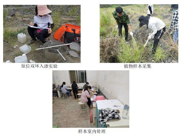 来站期间,同学们首先对蒋家沟流域进行了实地考察,选取了4种不同土地利用类型样地和优势草本植被(拟金茅、扭黄茅、香茅)样地,为后期开展具体实验做了准备。随后,在不同土地利用类型样地上,同学们进行了土壤原位入渗实验,并在样地范围内随机挖掘3个土壤剖面,分层采集环刀样本和土壤样本,将样本带回室内进行土壤物理性质和土壤粒径分布的测定(使用东川站马尔文MS2000激光粒度仪)。在优势草本植被样地,同学们采集了拟金茅、扭黄茅和香茅的地上部分、根系和土壤样本,将样本带回室内进行烘干、粉碎及筛分。