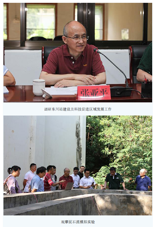 2020年8月4日至5日,中国科学院副院长、党组成员张亚平到中科院东川泥石流观测研究站调研野外台站建设,并与云南省昆明市东川区举行科技合作交流。中科院科技促进发展局局长严庆,中科院昆明分院副院长甘烦远,成都山地所所长文安邦、副所长陈晓清、副所长兼东川站站长苏立君和东川区委书记胡江辉,区委副书记、区长陈江等参加调研。