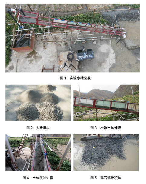 来站期间,在蒋家沟流域进行实地调查,了解地层岩性、结构构造、泥石流堆积物、灾害暴发历史、植被覆盖分布等情况。之后根据研究目标,选取了六种颗粒级配、三种水槽坡度和三种来流流量开展了54组室内水槽实验。在此期间,还与台站工作人员和其他科研学者展开了交流学习,观摩和学习了胡凯衡研究员团队开展的泥石流监测设备联合测试研究。在东川泥石流观测站开展的野外调查和水槽实验,对沟道松散物质起动形成泥石流的实验研究的认识更进一步,为后续研究提供了可靠的实践和理论基础。