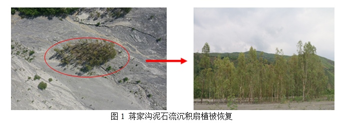 通过影像资料和野外实地调查,拟选取了蒋家沟的沉积扇区作为研究对象,查明泥石流沉积区与植被恢复的基本特征,探究泥石流沉积对植被(种类、数量、生物多样性、树木存活)的影响,探究植被特征(树木胸径、林分结构和密度等)对泥石流沉积(厚度、面积、形态)的影响。