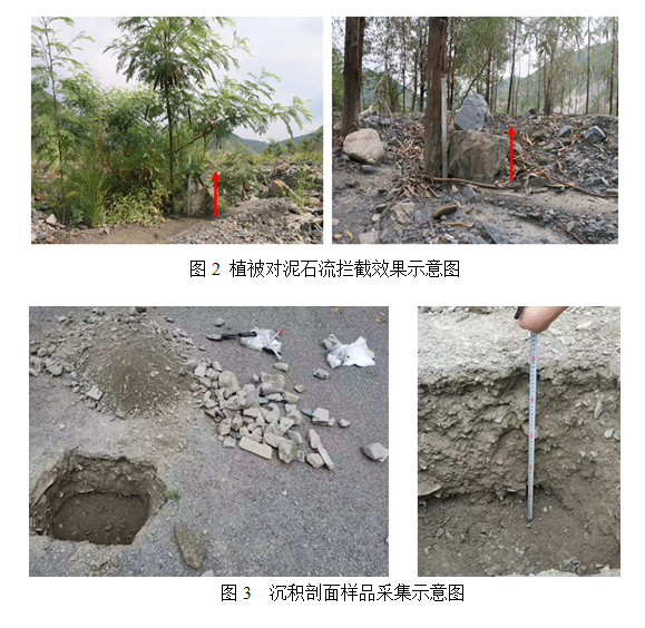 前期的野外调查数据可为后续水槽实验设计提供依据。通过前期野外调查,可选取典型的泥石流沟道为原型,确定植被拦截效果较好条件下,植被的胸径和林分密度,以此设计水槽模拟实验。模拟在不同胸径、不同密度植被模型条件下,植被对泥石流沉积过程、沉积形态以及沉积演化的影响。同时筛选出植株的最优胸径和最优密度,为泥石流的生态恢复提供参考。