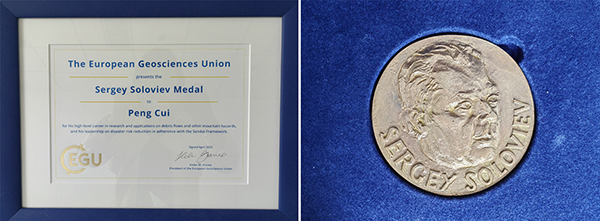 Sergey Soloviev奖章每年只颁发给一位在自然灾害基础理论研究方面有杰出科学贡献的科学家。崔鹏院士是第一位获此殊荣的中国科学家,并接受了EGU的专访,专访指出:“崔鹏在山地灾害科学前沿发挥了巨大的领导作用,推动了灾害风险学科的发展,其研究成果已应用于中国及国际重大灾害减灾中,得到了国际学术界的高度认可。”