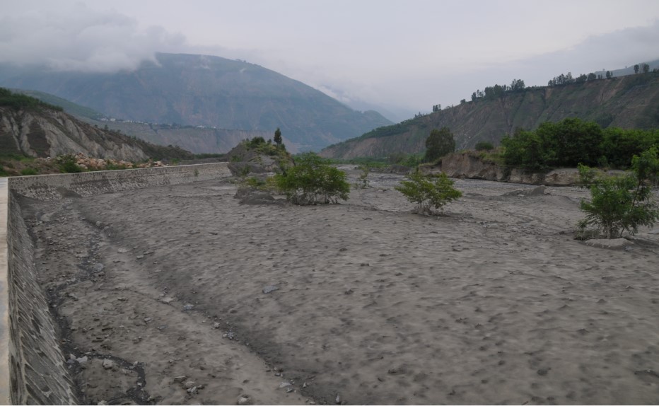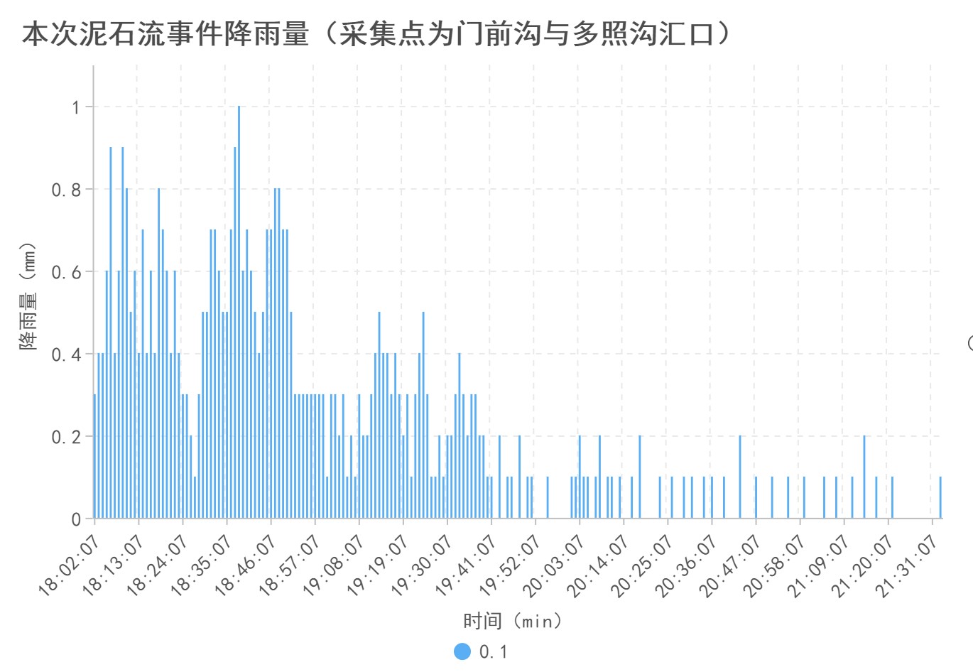 受短历时暴雨影响(前期小时雨量高达46mm)(图1),蒋家沟2023年8月2日19点21分爆发泥石流,持续时间1小时10分钟。本次泥石流共计78阵,泥石流性质由稀性逐渐过渡到粘性再到稀性(图2)。泥石流从窄深的门前沟蓄积能量后经过与多照沟的汇口来到宽谷段,然后经过鸡冠山段束窄后流速达到峰值,龙头流速高达12.5m/s,最大泥深高达1.5m,容重高达2.3t/m3。本次泥石流累计输沙量5.3万方,主要淤积在蒋家沟流通段门前沟多照沟汇口至小江汇口处(图3),部分泥石流输入小江,未造成淤积堵江。