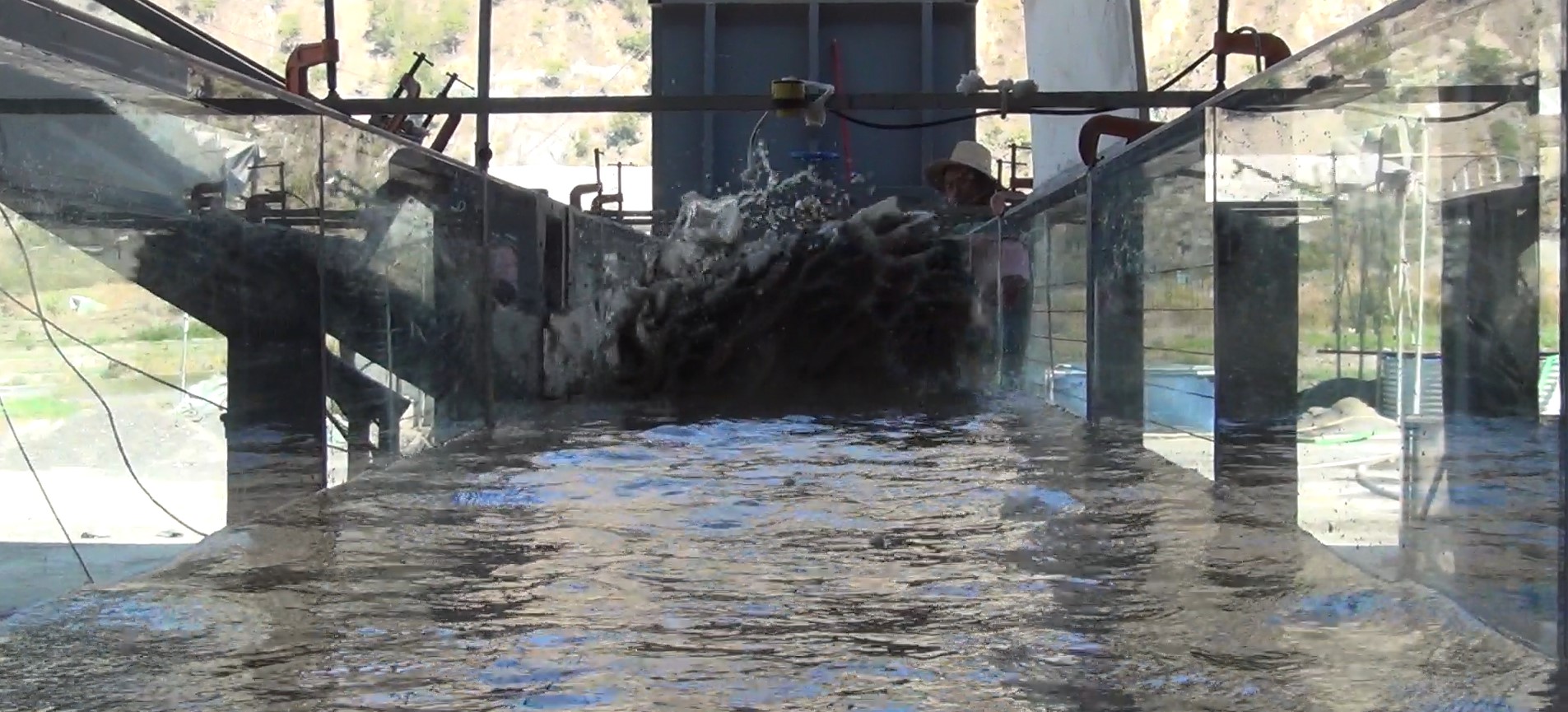 2024年10月15日至12月11日,成都山地所硕士研究生周天佳来站开展大尺度泥石流堵江灾害链物理模型试验。试验涉及关系泥石流堵江的多个变量,如体积、容重、主河流量等。探究不同变量对泥石流堵河过程、结果以及后续漫顶溃决的影响。试验结果表明,泥石流堵河是泥石流与河流相互作用的过程,堵河的结果和溃决的过程与泥石流的流态和体积、河流的流态等息息相关。