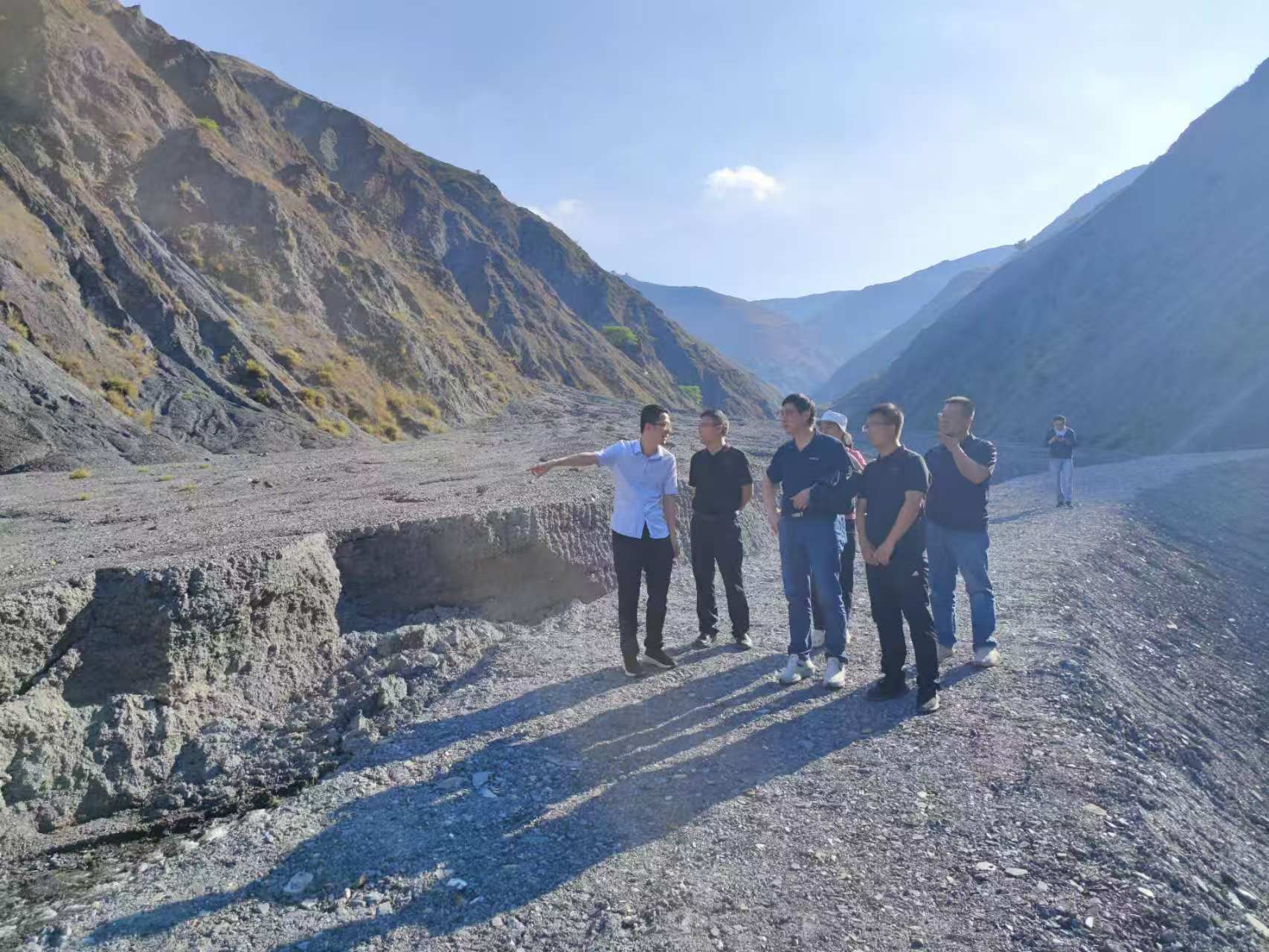 在宋东日研究员的引领下,康世昌首先实地查看了蒋家沟泥石流原位监测设施及野外实验场。期间,宋东日研究员详细介绍了东川站在蒋家沟布设的泥石流监测网络以及相关观测项目,康世昌所长认真听取介绍,详细询问了监测工作的细节和成效。