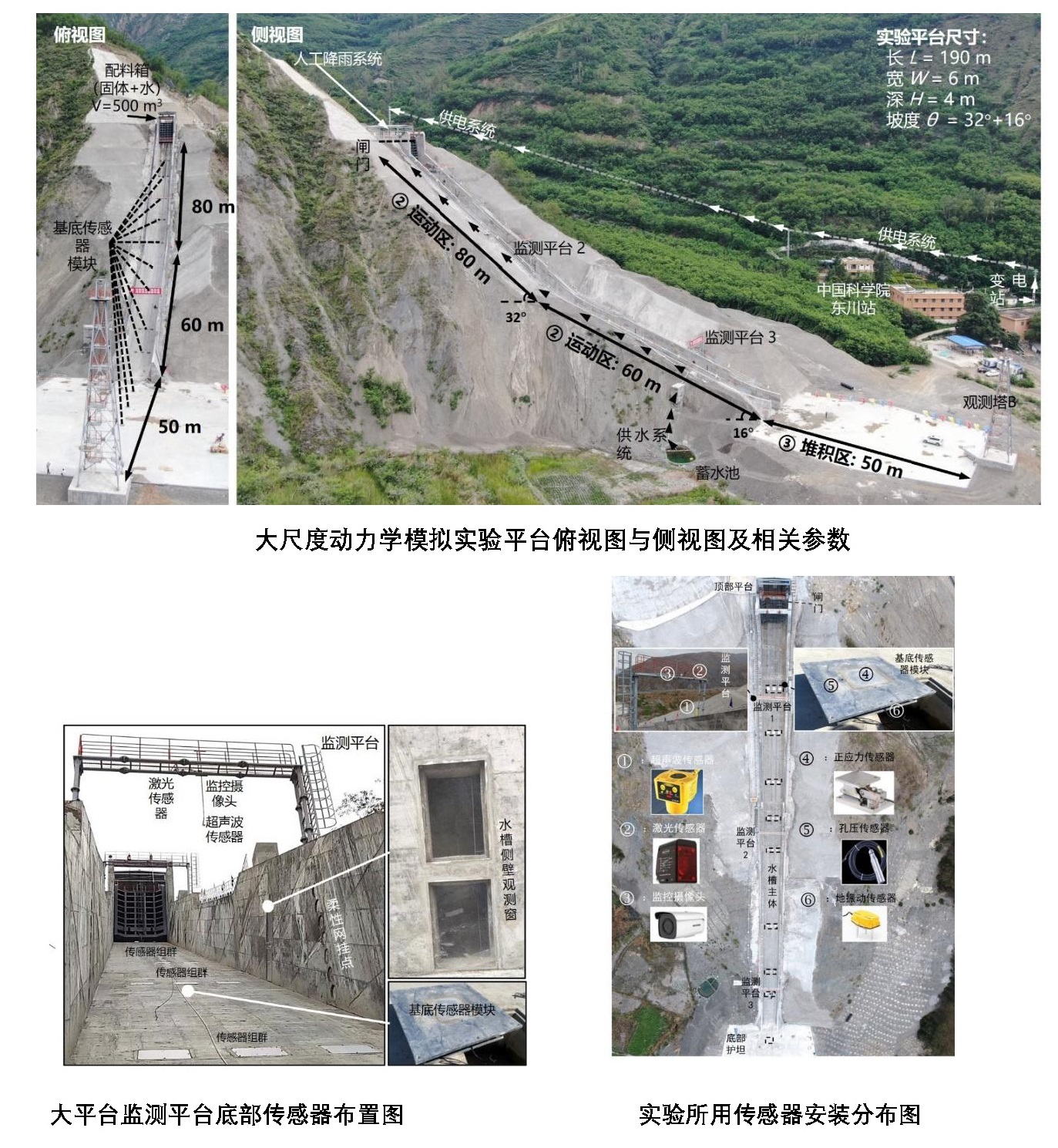 山地灾害大尺度动力学模拟实验平台由中国科学院、香港科技大学、中国电建集团联合出资研发,历经八年的筹备、设计、施工、安装以及调试,于2023年12月通过实验测试、试运行及工程竣工验收。“大平台”是全世界山地灾害物理模拟规模最大(滑坡、山洪、泥石流等山地灾害单次最大模拟规模达500m2,为世界之最)、自动化监测程度最高、系统数据采集同步性最佳的国际先进的实验平台。大平台配置了边缘侧分布式毫秒级采存算显一体化数据管理系统,避免传统大规模物联网平台需数据上云导致的传输延迟、传输带宽制约等,具有毫秒级精准传感器采集控制能力,可任意自定义采集数据类型。数据采集系统具有高鲁棒性可在恶劣环境下进行原位采存算显一体化处理,能达到亿级每秒的数据平台吞吐和计算支持能力。大平台可开展大规模山地灾害动力学模拟实验,有效解决滑坡和泥石流起动、运动、堆积(以及和防治工程结构体的相互作用)全过程的物理模拟的尺度效应和相似性问题,揭示防治工程对泥石流等山地灾害的调控机理,显著提升我国山地灾害研究的水平,使东川站的国际泥石流研究基地地位得到进一步巩固和加强,引领学科发展。